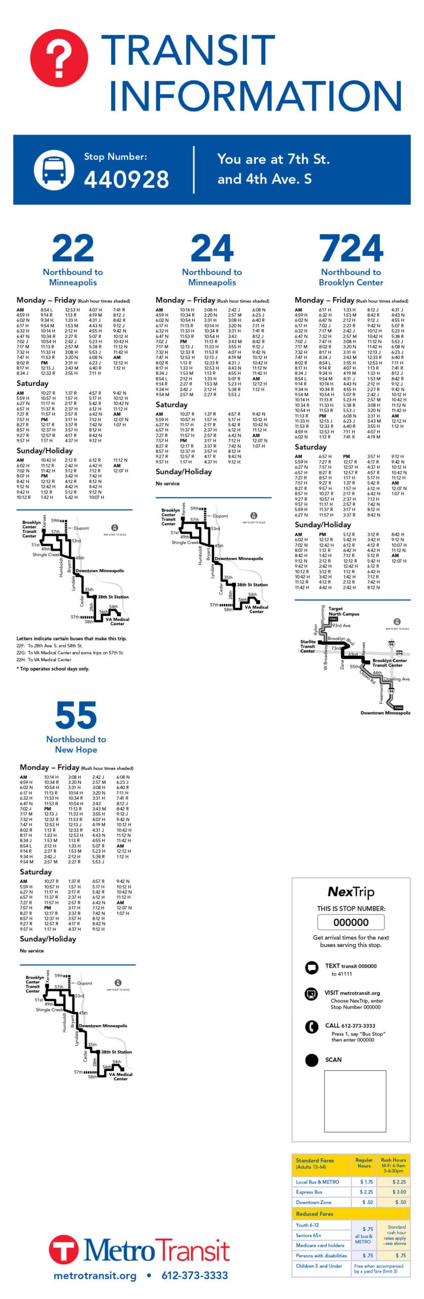 • Unique bus stop ID numbers for accessing NexTrip real-time info