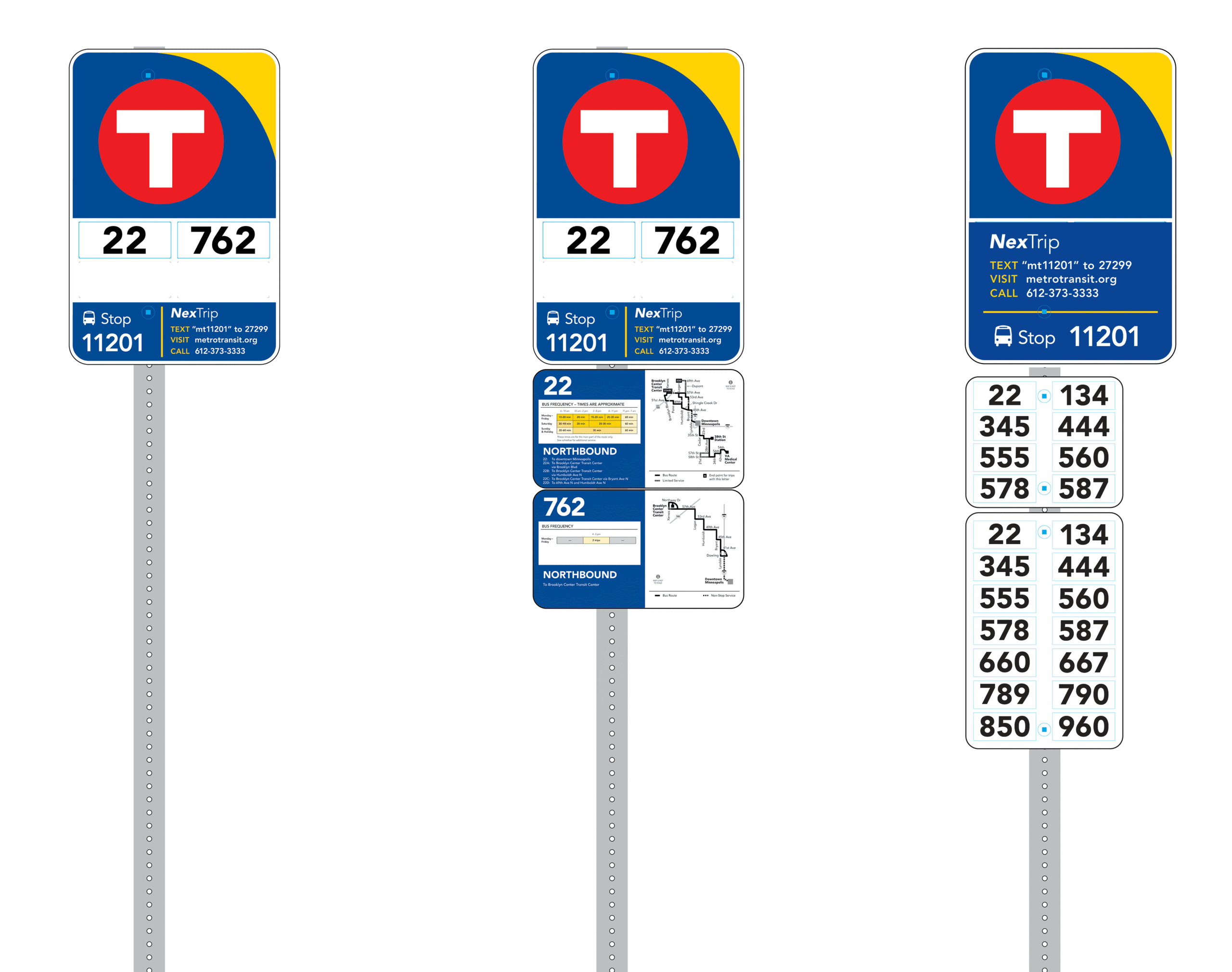 What started as a simple brand refresh for Metro Transit’s bus stop signs evolved into a two-year effort to improve the rider experience at more than 12,000 stops. I led visual design as part of a cross-functional team, working closely with staff, riders, and vendors to create signage that’s clear to read, easy to update, and accessible for all users.