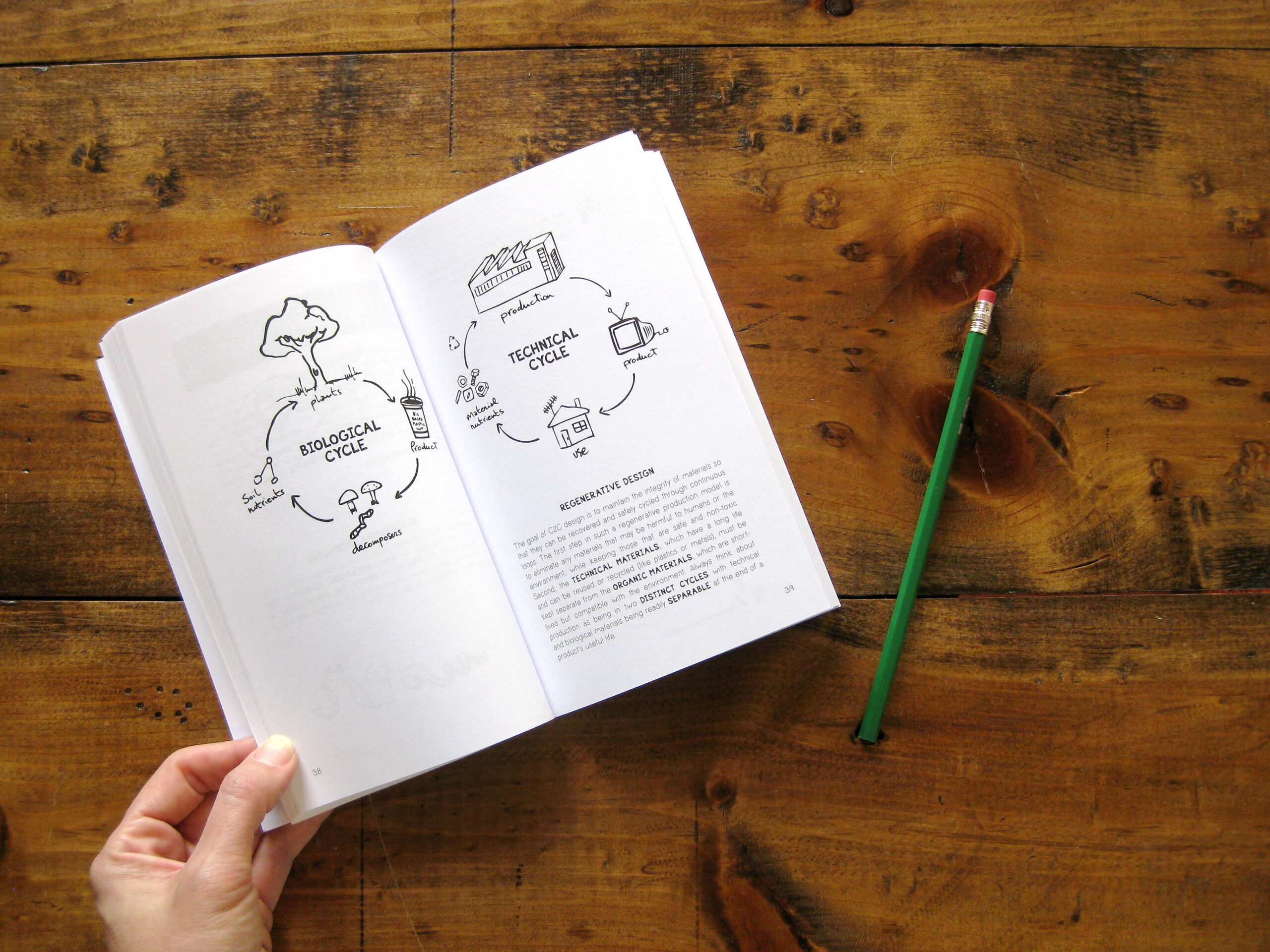 Part educational guide and part sketchbook, the book pairs practical sustainability concepts with prompts, questions, and space to draw and explore ideas. It helps readers understand how everyday choices affect the environment, then connects those insights to the design process—showing how thoughtful design can reduce impact, lower costs, and create more desirable products. Topics include ecological footprints, zero waste, cradle-to-cradle, biomimicry, life cycle assessment, sustainable design strategies, and communicating sustainability.