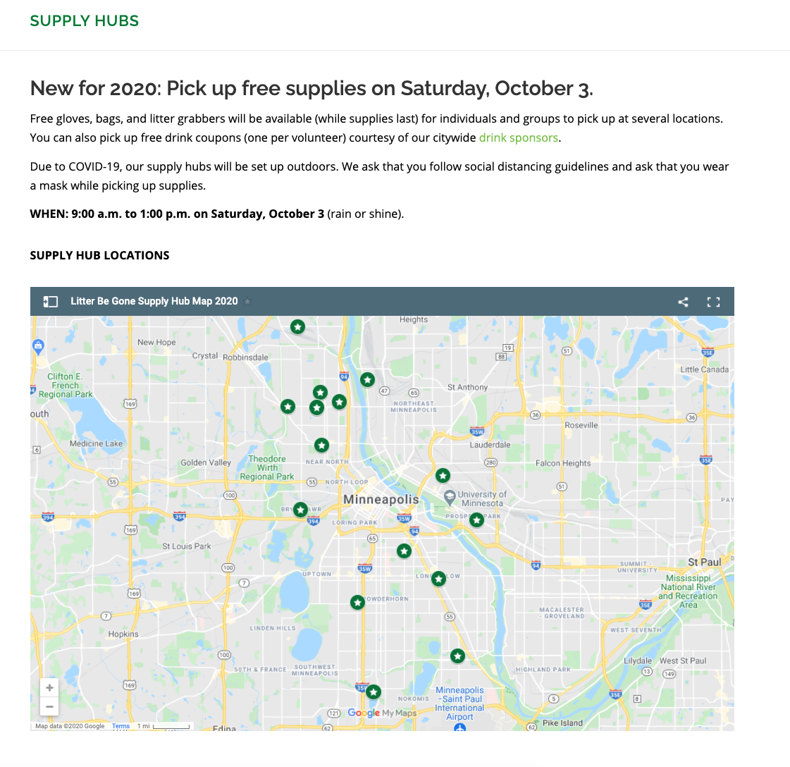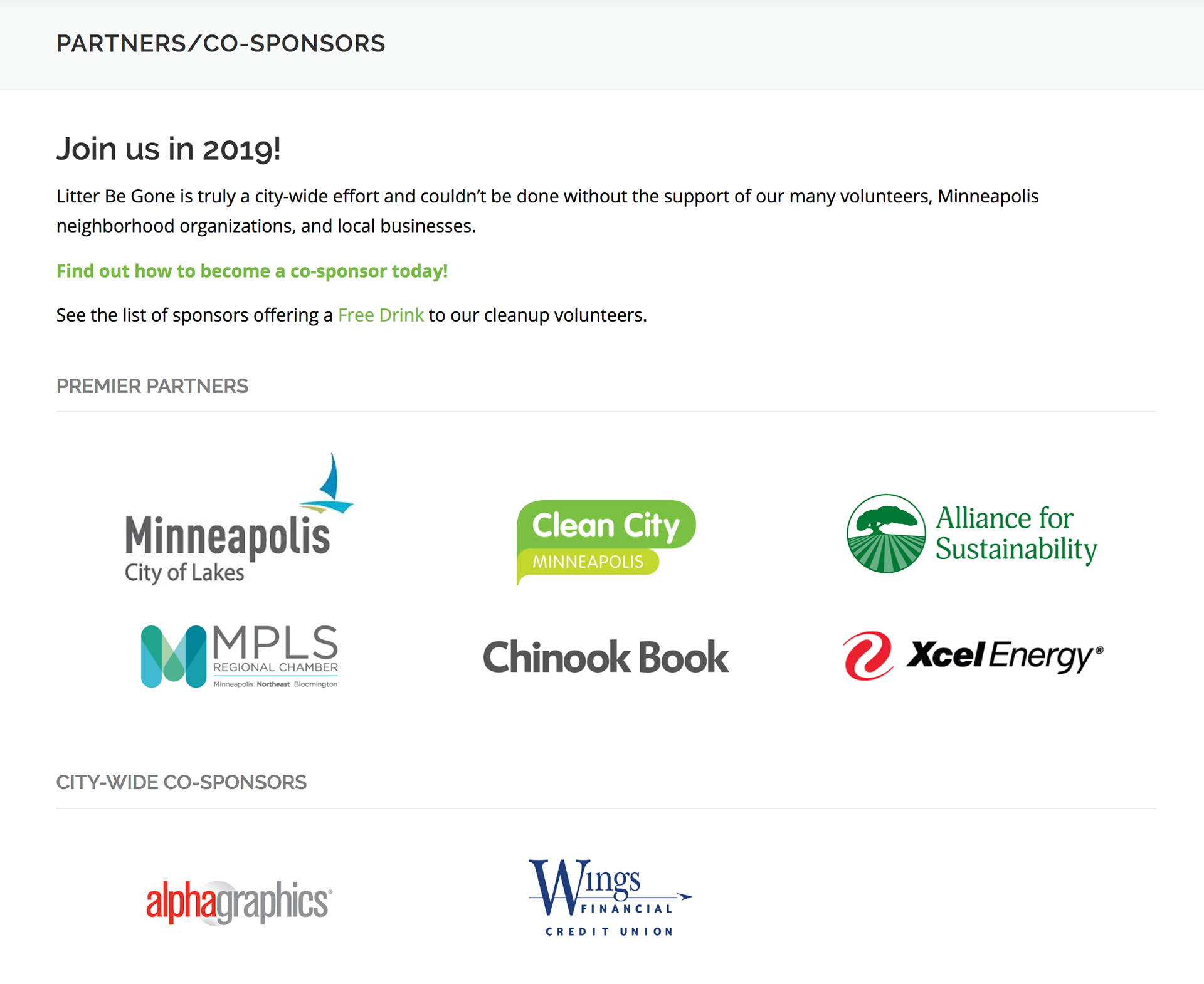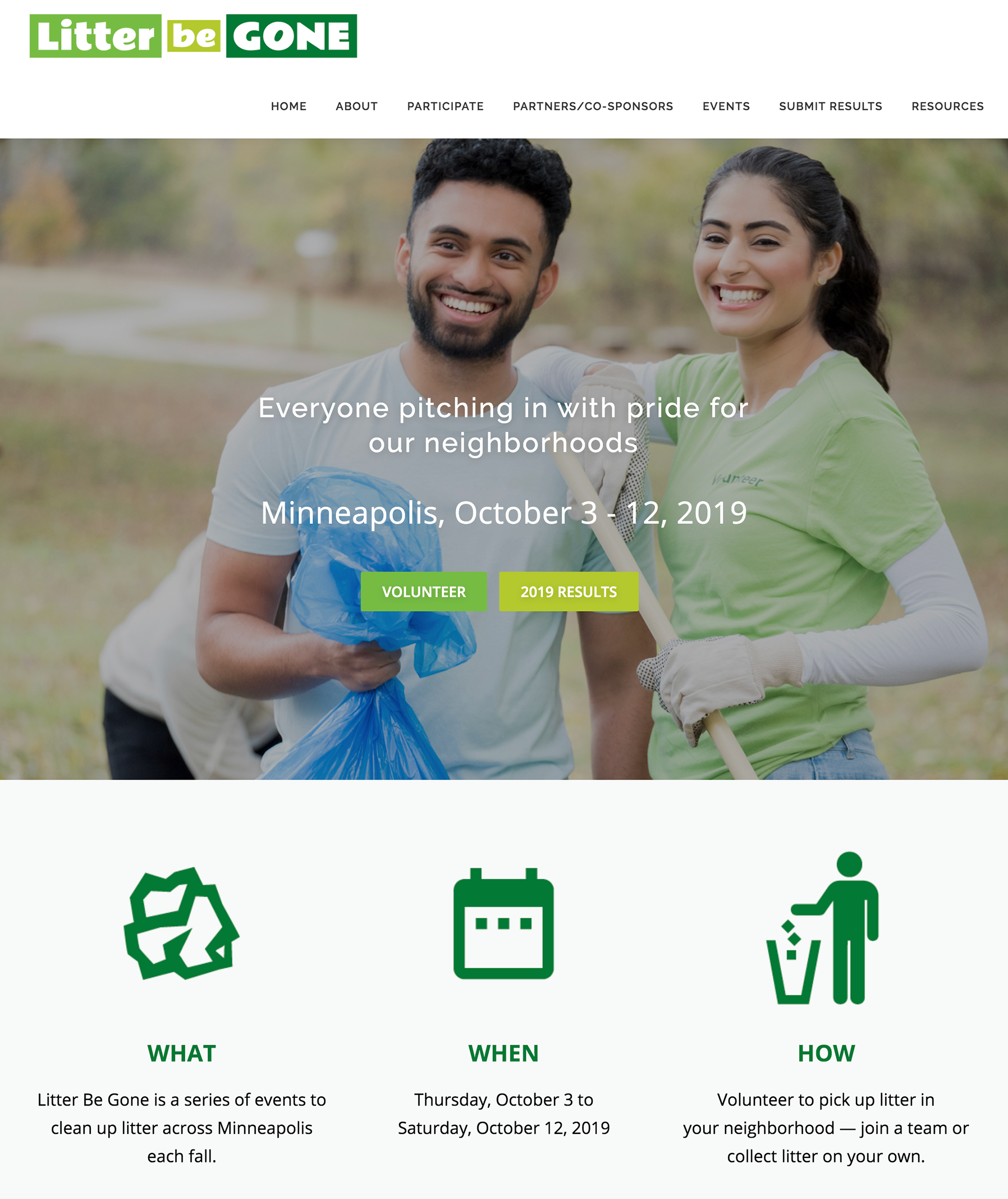 In 2018, the City of Minneapolis partnered with the Alliance for Sustainability to launch Litter Be Gone, a citywide cleanup designed to build community pride and reduce neighborhood litter. As a board member of the Alliance, I led the campaign’s launch—directing the media strategy, developing promotional materials, and designing the website.